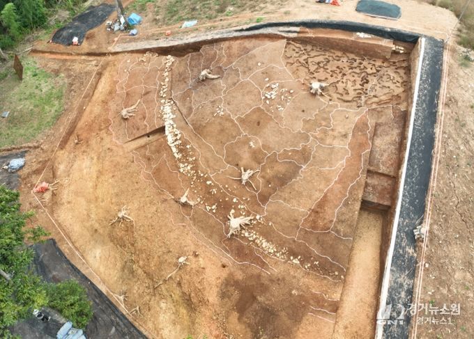 [경기뉴스원/경기뉴스1] | 경상남도는 31일 고성읍 기월리 일원에서 진행 중인 고성 송학동 고분군 14호분 2차 발굴조사 결과, 가야권역 내 최대 규모의 봉분 구조와 정교한 축조공정이 새롭게 밝혀졌다고 밝혔다.