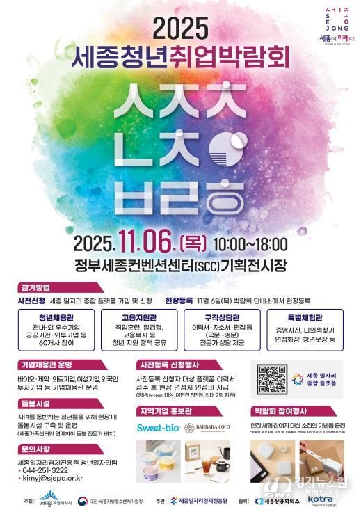 [경기뉴스원/경기뉴스1] | 세종특별자치시가 오는 6일 오전 10시부터 오후 6시까지 정부세종컨벤션센터 기획전시장에서 녩세종청년취업박람회’를 개최한다.