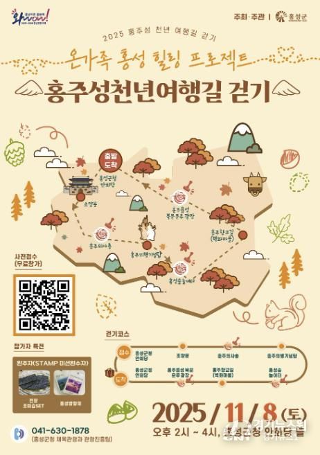 [경기뉴스원/경기뉴스1] | 홍성군은 오는 8일 오후 2시, 군청 안회당 뜰에서 ‘2025 홍주성천년여행길 걷기 대회’를 개최한다고 밝혔다.
