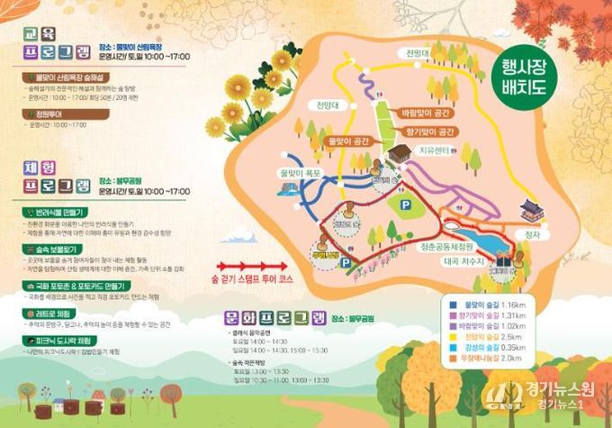 [경기뉴스원/경기뉴스1] | 전남 무안군은 오는 8일부터 9일까지 주말 2일간 무안 물맞이골 산림욕장 및 불무공원 일원에서 ‘물맞이골 숲 걷기 및 체험 행사’를 개최한다.