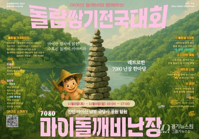 [경기뉴스원/경기뉴스1] | 진안군은 11월 8일부터 9일까지, 마이산 남부 금당사 공원 일원에서 ‘소원 돌탑 쌓기 전국대회’와 ‘마이돌깨비 난장’이 열린다고 밝혔다.