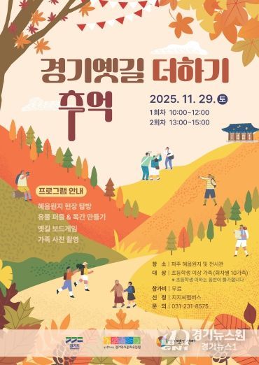 [경기뉴스원/경기뉴스1] | 경기문화재단 경기역사문화유산원는 오는 11월 29일 토요일, 의주길에 위치한 파주 혜음원지 일대에서 초등학생 이상 자녀를 둔 가족을 대상으로 하는 역사 체험 프로그램 ‘경기옛길 더하기 추억’을 개최한다고 밝혔다.