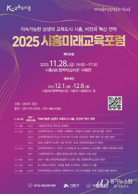[경기뉴스원/경기뉴스1] | 시흥시는 시흥교육지원청, 시흥시의회와 함께 오는 11월 28일부터 12월 8일까지 ‘2025 시흥미래교육포럼’을 진행한다.