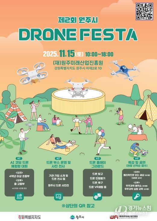 [경기뉴스원/경기뉴스1] | 원주시는 오는 15일 오전 10시부터 오후 6시까지 원주미래산업진흥원에서 ‘제2회 원주시 드론페스타’를 개최한다.