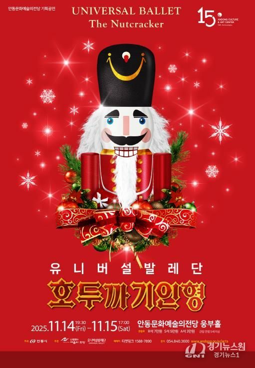[경기뉴스원/경기뉴스1] | 안동문화예술의전당은 연말을 맞아, 전 세계가 사랑하는 고전 발레 '호두까기 인형'을 무대에 올린다. 이번 공연은 11월 14일 오후 7시 30분, 11월 15일 오후 5시 안동문화예술의전당 웅부홀에서 진행되며, 국내 대표 발레단인 유니버설발레단이 출연해 풍부한 음악과 함께 완성도 높은 클래식 발레를 선보인다.