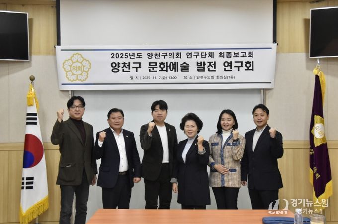 [경기뉴스원/경기뉴스1] | 2025년 양천구의회 의원연구단체 ‘양천구 문화예술 발전 연구회’가 지난 7일(금) 구의회 1층 회의실에서 최종보고회를 열어 올해 연구 활동을 마무리하며 성과를 공유했다.