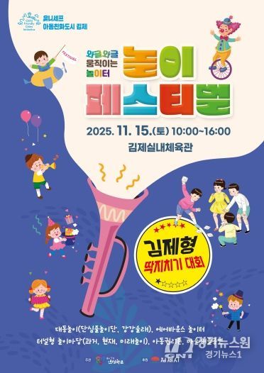 [경기뉴스원/경기뉴스1] | 김제시는 아이들이 자유롭게 놀며 성장하는 아동친화도시 실현을 위해 오는 15일, 김제실내체육관 및 주차장 일대에서 와글와글 움직이는 놀이터,‘제2회 놀이페스티벌’행사를 개최한다고 밝혔다.