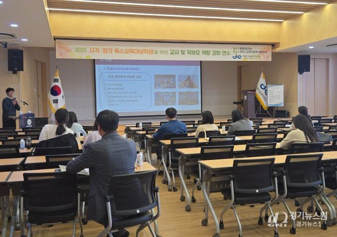 [경기뉴스원/경기뉴스1] | 제주시교육지원청 특수교육지원센터는 7일 제주시교육지원청 대회의실에서 제주시 관내 특수교사와 일반교사, 보호자 등 32명을 대상으로 ‘시청각 특수교육대상학생을 위한 교사 및 학부모 역량 강화 연수’를 실시했다.