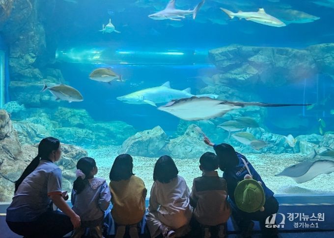[경기뉴스원/경기뉴스1] | 경기도수원교육지원청이 운영하는 수원 E:음 거점형 늘봄센터는 11월 10일 아쿠아플라넷 광교에서 해양생태 탐구 체험 프로그램 ‘하루에 바다를 다 체험할지니’를 진행했다. 프로그램에는 태장초, 망포초, 잠원초 1~4학년 학생 32명이 참여했다.