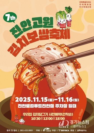 [경기뉴스원/경기뉴스1] | 진안군은 오는 11월 15일에서 16일까지 이틀간 로컬푸드 직매장 진안점(진안군 진안읍 학천변길 37-9) 일원에서 ‘진안고원 김치보쌈 축제’를 개최한다.