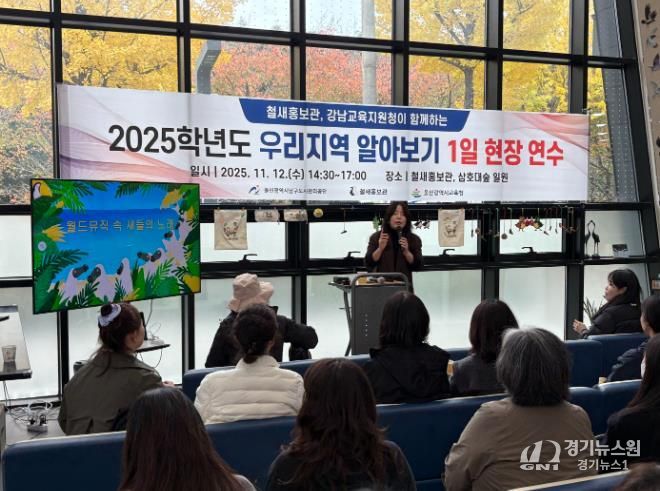 [경기뉴스원/경기뉴스1] | 울산 강남교육지원청은 12일 울산 남구 철새홍보관과 삼호대숲 일원에서 초등 교원 40여 명을 대상으로 ‘2학기 우리 지역 알아보기 1일 현장 연수’ 3차 프로그램을 운영했다.