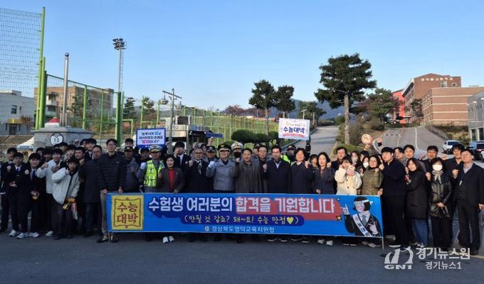 [경기뉴스원/경기뉴스1] | 경상북도영덕교육지원청 2025년 11월 13일 2026학년도 대학수학능력시험을 맞아 영덕고등학교 정문 앞에서 수험생들을 응원하고 안전한 시험 진행을 기원하는 ‘2026 대학수학능력시험 수험생 응원 캠페인’을 실시했다.
