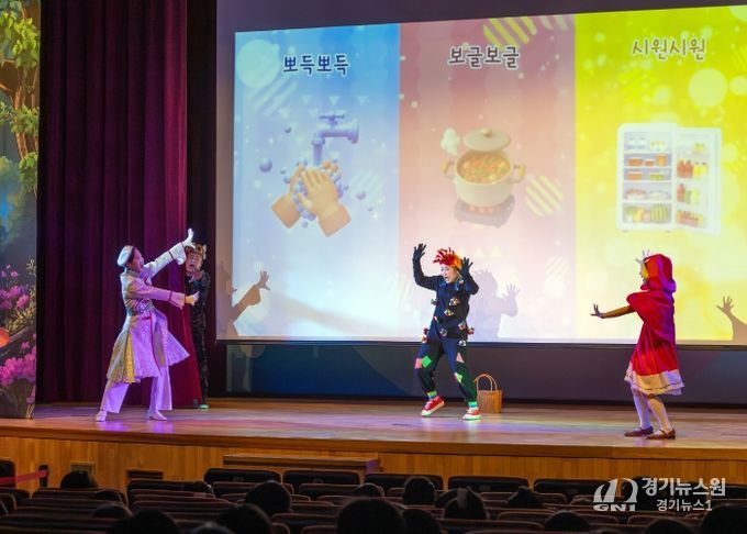 공연은 ▲식중독 예방을 위한 올바른 손 씻기 방법 ▲건강한 생활을 위한 바른 식습관 등 교육 내용을 음악과 율동으로 표현해, 유아들이 직접 참여하며 즐겁게 체험할 수 있도록 구성됐다.