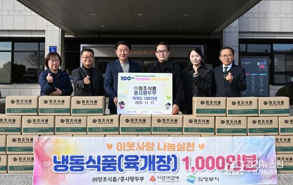 [경기뉴스원/경기뉴스1] | 의정부시는 11월 17일 ㈜창조식품이 냉동식품(육개장) 1천인분(550만 원 상당)을 송산·신곡권역에 기부하며 ‘100일간 사랑릴레이 배턴 잇기’ 에 동참했다고 밝혔다.