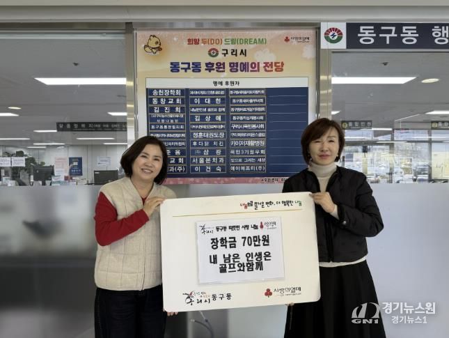 [경기뉴스원/경기뉴스1] | 구리시 동구동 행정복지센터는 지난 18일 동구동 행정복지센터 대회의실에서 '내 남은 인생은 골프와 함께' 모임으로부터 관내 취약계층 청소년을 위한 장학금 70만 원을 기탁받았다고 밝혔다.