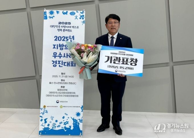 [경기뉴스원/경기뉴스1] | 완도군의회는 행정안전부가 주관하는 지방의회 우수사례 경진대회에서 2024년에 이어 2025년에도 기관표창을 수상하게 됐다고 밝히며, 이는 도서 지역이라는 완도만의 특성과 군민의 생활 현장을 반영한 생활밀착형 의정활동이 전국적으로 인정받은 결과라고 설명했다.
