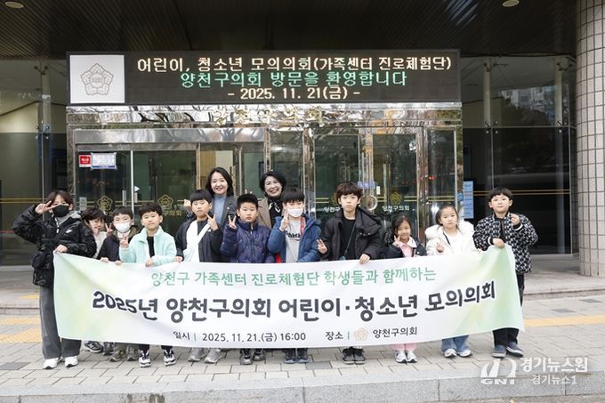 [경기뉴스원/경기뉴스1] | 서울시 양천구의회는 11월 21일 오후, 본회의장과 상임위원회실에서 양천구 가족센터 진로체험단 소속 초등학생 14명을 대상으로 ‘2025년 어린이·청소년 모의의회’를 개최했다.