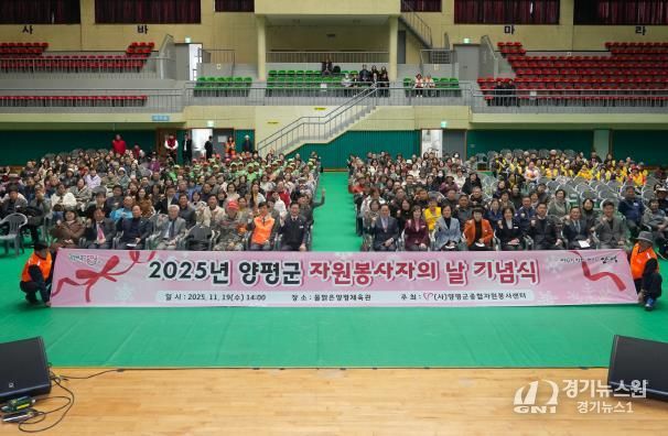 [경기뉴스원/경기뉴스1] | 양평군종합자원봉사센터는 지난 19일 물맑은양평체육관에서 ‘2025 양평군 자원봉사자의 날 기념식’을 성황리에 개최했다.