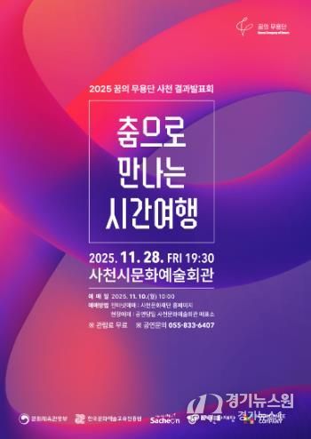 [경기뉴스원/경기뉴스1] | 사천문화재단은 오는 11월 28일 오후 7시 30분, 사천시문화예술회관 대공연장에서 ‘2025 꿈의 무용단 사천’ 결과발표회 '춤으로 만나는 시간여행'을 개최한다.