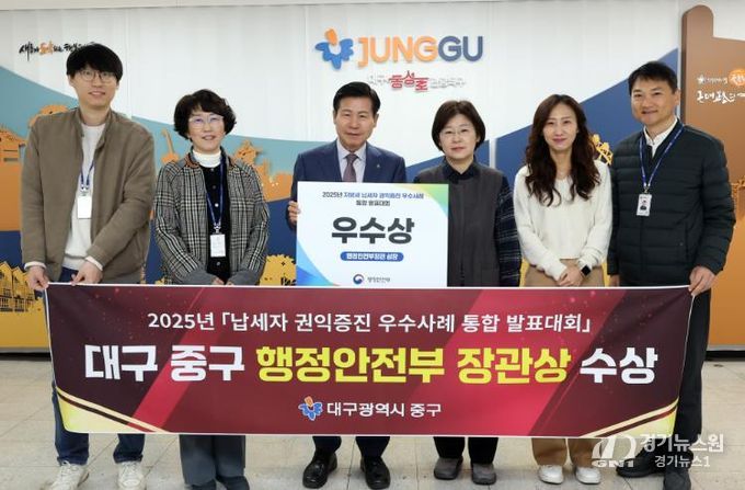 [경기뉴스원/경기뉴스1] | 대구 중구는 지난 20일부터 21일까지 강릉시 세인트존스호텔에서 행정안전부 주최로 열린 ‘2025년 지방세 납세자 권익증진 우수사례 통합 발표대회’에서 우수상을 받았다.