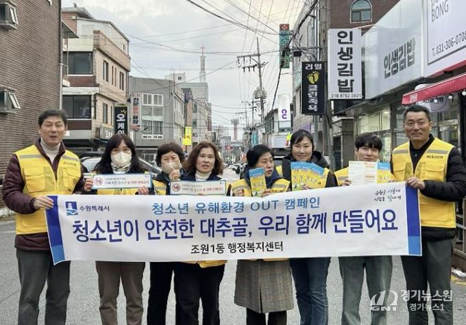 [경기뉴스원/경기뉴스1] | 수원시 장안구 조원1동은 지난 27일 조원1동 상가 밀집 지역의 음식점과 주류 매장 등을 방문해 ‘청소년 유해환경 업소 계도활동’을 실시했다.