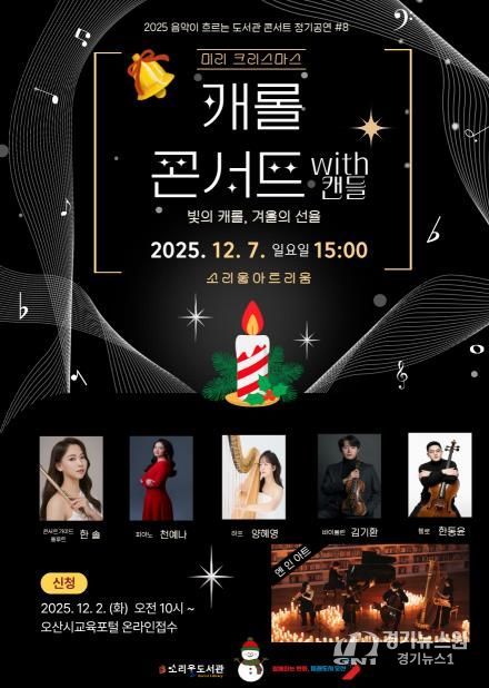 [경기뉴스원/경기뉴스1] | 경기도 오산시 소리울도서관은 연말을 맞아 시민들에게 겨울 감성을 선사하는 '미리 크리스마스 – 캐롤 콘서트 with 캔들'을 오는 12월 7일 오후 3시 소리울아트리움에서 개최한다고 밝혔다.