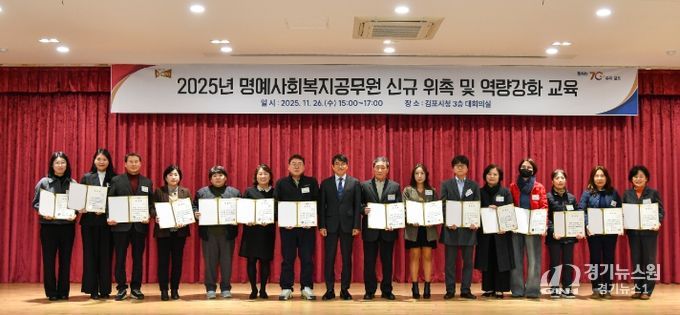 [경기뉴스원/경기뉴스1] | 김포시는 지난 26일 통·리장과 지역사회보장협의체 위원 등 지역 주민 181명을 신규 명예사회복지공무원으로 위촉했다. 이 중 대표 15명에게 위촉장을 수여했으며, 약 100명을 대상으로 역량 강화 교육도 함께 진행했다.
