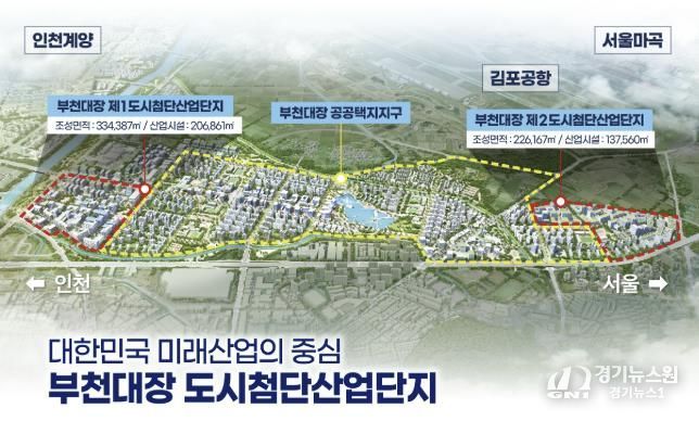 부천대장 제1·2도시첨단산업단지는 각각 오정구 대장동·원종동 일원에 에너지·반도체·항공·정밀기계·인공지능(AI)·로봇·자동화 등 미래 첨단산업 전반을 아우르는 연구개발 거점으로 조성될 계획이다. 현재 부지 조성을 위한 절차가 한창으로 2029년 준공을 목표로 하고 있다.