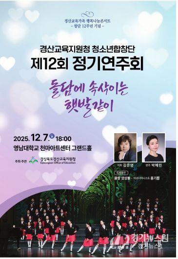 [경기뉴스원/경기뉴스1] | 경산교육지원청 청소년합창단은 오는 2025년 12월 7일(일) 영남대학교 천마아트센터에서 ‘제12회 정기연주회’를 개최한다.