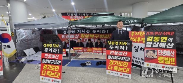 [경기뉴스원/경기뉴스1] | 경기도의회 경제노동위원회 소속 한원찬 의원(국민의힘, 수원6)은 김동연 경기도지사의 일방적인 행정과 고질적인 '불통'이 민생예산 삭감 및 행정사무감사 거부 사태를 낳았다고 강력히 비판했다. 한 의원은 현재 무기한 단식 농성 중인 경기도의회 국민의힘 백현종 대표의원(국민의힘, 성남4)의 투쟁에 동참하며 민생예산 원상복구를 촉구했다.