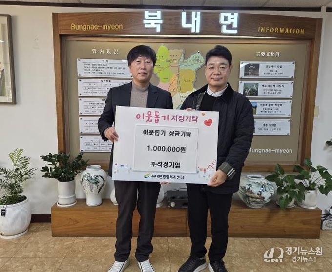 [경기뉴스원/경기뉴스1] | 여주시 북내면행정복지센터는 지난 2025년 12월 3일, 북내면에 소재한 ㈜석성기업, ㈜정안가설산업으로부터 각각 100만 원씩, 총 200만 원의 성금을 기탁받으며 따뜻한 연말 분위기를 더했다고 밝혔다.