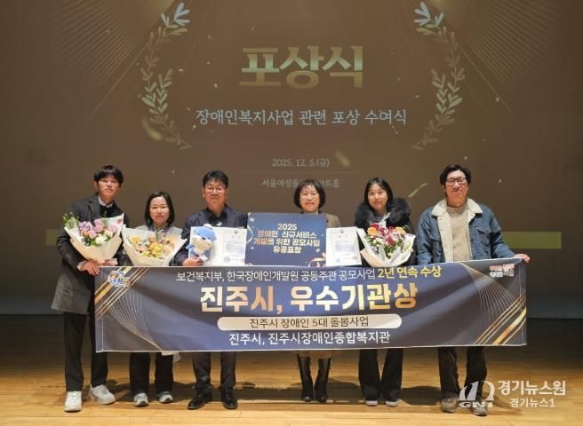 진주시는 보건복지부와 한국장애인개발원이 공동으로 주관한 ‘2025년 장애인 신규서비스 개발을 위한 공모사업’ 평가에서 ‘진주시 장애인 5대 돌봄사업’이 ‘우수상’을 차지해 2년 연속 수상의 영예를 안았다고 밝혔다.