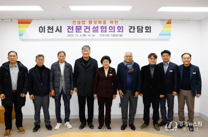 [경기뉴스원/경기뉴스1] | 이천시는 12월 4일 시청 다올실에서 전문건설협회와 간담회를 열고 지역 건설산업과 관련한 현장의 의견을 청취하는 자리를 마련했다. 이번 간담회에는 김경희 이천시장과 김종구 전문건설협회장을 비롯한 협회 임원 등 총 9명이 참석했다.