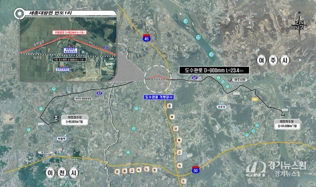 [경기뉴스원/경기뉴스1] | 이천시는 남한강 강천보 상류에서 취수한 원수를 이천정수장으로 이송하는 도수관로의 잦은 누수 문제를 해소하기 위해 추진해 온 ‘이천시 도수관로 개량사업(여주시 세종대왕면 일원, 우회 설치 L=1.8km)’을 최근 완료하여 수계 전환을 성공적으로 마쳤다고 밝혔다.