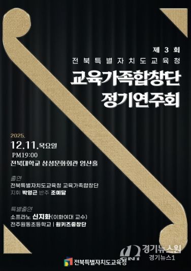 [경기뉴스원/경기뉴스1] | 전북특별자치도교육청은 오는 11일 오후 7시 전북대학교 삼성문화회관에서 ‘제3회 전북특별자치도교육청 교육가족합창단(이하 교육가족합창단) 정기연주회’를 개최한다고 밝혔다.