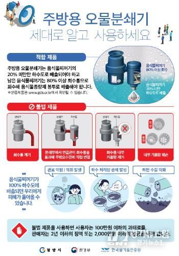 시 관계자는 “인증받지 않은 주방용 오물분쇄기는 하수도 시스템에 심각한 부담을 주고 환경오염을 유발할 수 있다”며 “제품 구입 시 KC 안전인증 표시를 반드시 확인하고, 합법 제품이라 하더라도 일반가정에서만 사용 가능하다는 점을 유의해 달라”고 당부했다.