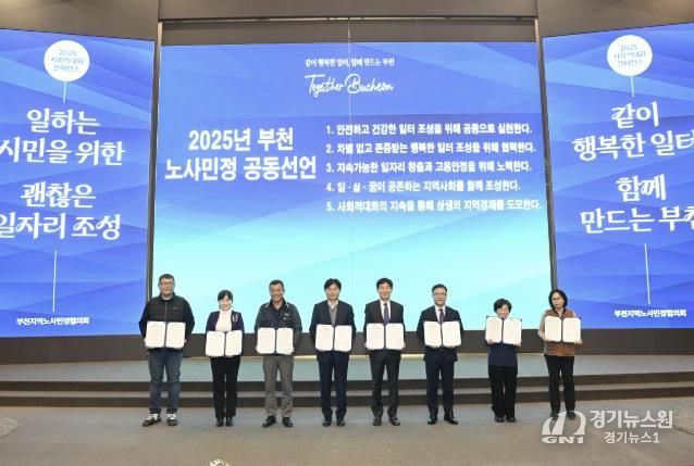 [경기뉴스원/경기뉴스1] | 부천시는 지난 9일 소풍컨벤션웨딩에서 부천지역노사민정협의회 주관으로 ‘2025년 사회적대화 컨퍼런스 및 공동선언식’을 개최했다고 11일 밝혔다.