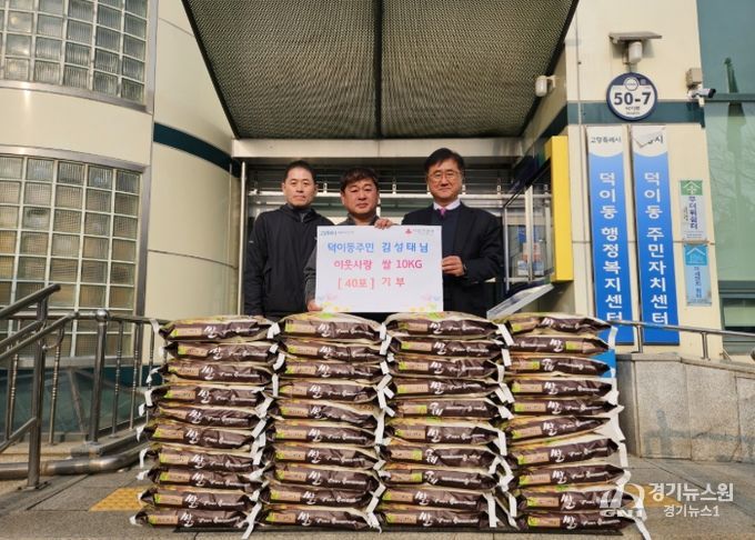 [경기뉴스원/경기뉴스1] | 고양특례시 일산서구 덕이동은 지난 10일, 지역 주민 김성태 씨가 직접 경작한 쌀 10kg 40포(총 400kg)를 어려운 이웃을 위해 기부했다고 밝혔다.