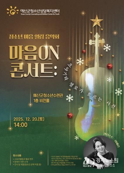 [경기뉴스원/경기뉴스1] | 예산군청소년상담복지센터는 청소년과 가족의 정서적 치유를 돕기 위한 문화예술 프로그램으로 ‘청소년 마음 열림음악회 마음 온(ON) 콘서트’를 오는 20일 개최한다.