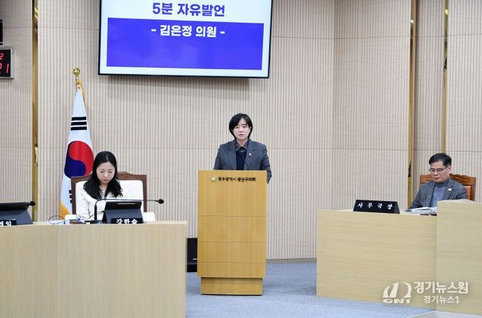 [경기뉴스원/경기뉴스1] | 김은정 광산구의원(진보당, 첨단1·2동)은 19일 열린 제301회 광산구의회 정례회 제4차 본회의에서 5분 자유발언을 통해 광산구 보건소 공무직 노동자들의 열악한 처우를 강하게 비판하고 광산구의 즉각적인 개선을 촉구했다.