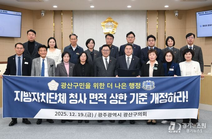 이에 광산구의회는 지방자치단체 청사 면적 상한 기준을 인구 증가 및 행정 수요 변화에 맞춰 즉시 상향 조정하고, 제2청사 건립 등 공간 확충 계획을 가로막는 현행 14,061㎡ 면적 제한 규정을 합리적 완화 또는 폐지해야 한다고 주장했다.
