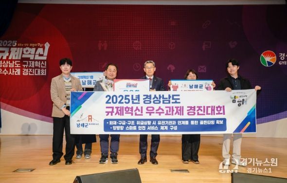 [경기뉴스원/경기뉴스1] | 경상남도는 19일 도청 본관 4층 대회의실에서 ‘2025 경상남도 규제혁신 우수사례 경진대회’를 개최했다. 이번 경진대회는 규제혁신을 통해 도민이 체감할 수 있는 변화를 이끌어낸 우수사례를 공유하고, 향후 추진 방향을 모색하기 위해 마련됐다.