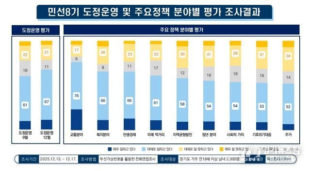 12월 민선8기 경기도정 긍정평가 67%. 9월 대비 6%p 상승