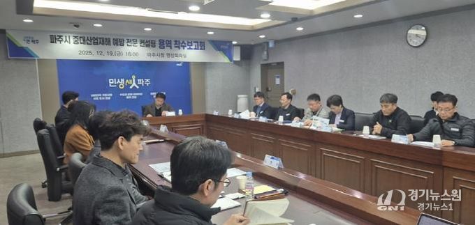 [경기뉴스원/경기뉴스1] | 파주시는 지난 19일, 중대산업재해 예방 및 재발 방지 실행 체계를 마련하기 위한 '파주시 중대산업재해 예방 전문 컨설팅 용역' 착수보고회를 개최했다. 시는 이번 연구용역을 통해 파주시의 안전보건관리체계를 총체적으로 점검하고 재정립해 중대산업재해 예방에 총력을 기울여나간다는 계획이다.