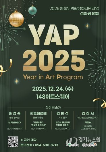 [경기뉴스원/경기뉴스1] | (재)영주문화관광재단은 오는 12월 24일 148아트스퀘어에서 크리스마스 컨셉의 ‘2025 예술누림활성화 지원사업 성과공유회 'YAP 2025'’를 개최할 예정이다.