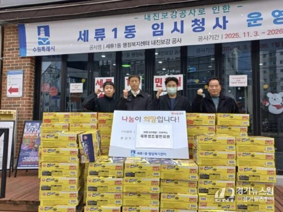 이번 나눔은 겨울철 경제적 어려움을 겪고 있는 취약계층 이웃들에게 작은 힘이 되고자 마련됐으며, 기탁된 라면은 세류1동 내 취약계층 및 도움이 필요한 가구에 전달될 예정이다.
