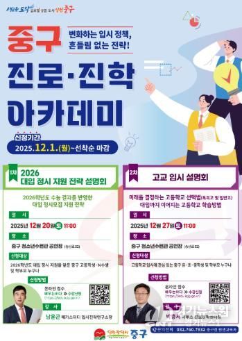 이번 설명회는 중구에서 추진하는 진로·진학 아카데미 중 하나로, 변화하는 입시 환경에 대응해 실질적인 정보 제공으로 학생과 학부모들의 불안감을 덜고 체계적으로 진학 계획을 수립할 수 있도록 지원하고자 마련됐다.