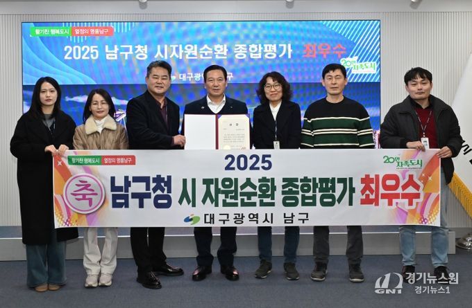 [경기뉴스원/경기뉴스1] | 대구 남구는 2025 대구시 자원순환행정 종합평가에서 9개 구·군 가운데 ‘최우수’(1위)를 차지하며, 자원순환 선도 도시 명품 남구의 위엄을 알렸다.