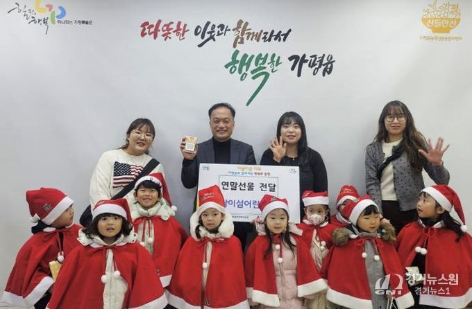 [경기뉴스원/경기뉴스1] | 가평군 가평읍 소재 남이섬어린이집 선생님과 아이들은 지난 19일 가평읍 행정복지센터를 방문해 따뜻한 연말 선물을 전달했다.