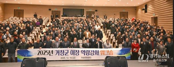 [경기뉴스원/경기뉴스1] | 거창군은 지난 19일 거창문화센터 공연장에서 구인모 군수, 신성범 국회의원, 이재운 군의회 의장, 박주언 문화복지위원장, 김일수 도의원, 군의원, 거창군 이장, 담당 공무원 등 300여 명이 참석한 가운데 ‘2025년 거창군 이장 역량강화 워크숍’을 성황리에 개최했다고 밝혔다.
